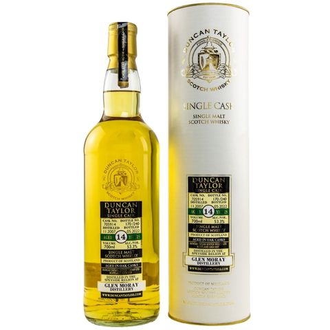 Glen Moray was matured in oak cask 705914 which produced 240 bottles. It was distilled in 11.2007 and bottled at cask strength 53.3% ABV 05.2022.