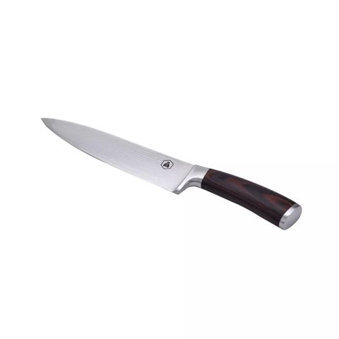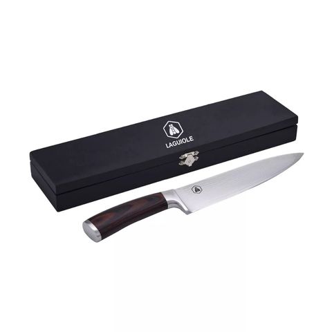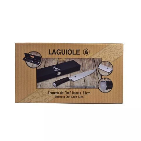 The steel Chef's Knife cuts meat, fish and vegetables very easily. This knife has a remarkable solidity, and also a slight flexibility, so that the blade is as ergonomic as possible. brings great efficiency to the cutting edge and therefore a longer cutting life. Useful for slicing, chopping and chopping. Scalloped stainless steel blade.