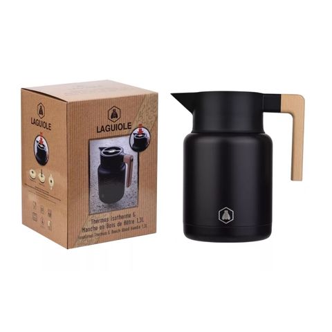 This 1.3L with beech wood handle combines elegance and thermal performance. Ideal for professionals, it keeps drinks hot or cold for several hours while offering a comfortable grip thanks to its natural wooden handle. Dimensions Length 19.5 cm Width 12.7 cm Height 21.2 cm Weight 800 g