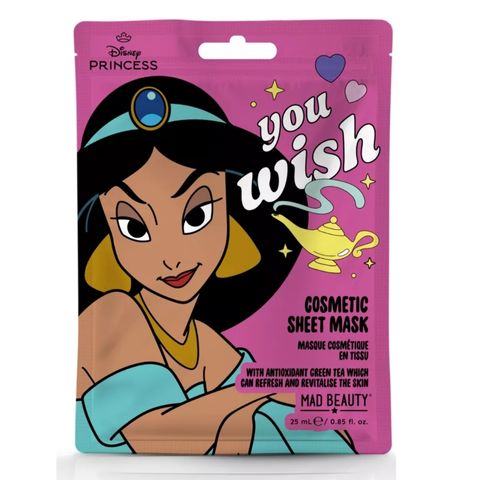Prep and prime or relax and refresh the skin with this Disney Princess Jasmine printed character face mask with the added benefits of hydrating hyaluronic acid and infused with green tea extract, known for its antioxidant properties to leave the skin feeling soothed and hydrated. Aqua(Water), Butylene glycol, Glycerin, Propylene glycol, Trehalose, Betaine, Niacinamide, Panthenol, Glyceryl acrylate/acrylic acid copolymer, PVM/MA copolymer, Sodium hyaluronate, Carbomer, Potassium hydroxide, Dipotassium glycyrrhizate, Tocopheryl acetate, Phenoxyethanol, Polysorbate 20, Portulaca oleracea extract, Sericin, Disodium EDTA, Cucumis sativus (cucumber) extract, Parfum(Fragrance), Ethylhexylglycerin, Camellia Sinensis (Green Tea) Leaf Extract, Citric acid, Potassium sorbate, Hexyl Cinnamal, Linalyl Acetate, Linalool, Tetramethyl acetyloctahydronaphthalenes, Limonene, Citrus Aurantium Peel Oil, Aloe barbadensis (aloe vera) leaf extract.