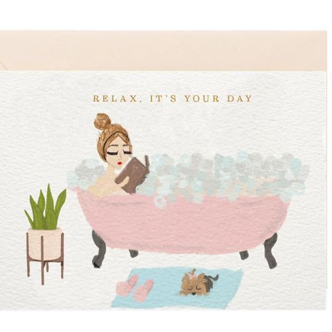 Hand-Painted Greeting Card - Perfect for Your Best Friend or Sister Celebrate the special moments in life with this exquisite hand-painted greeting card from NellyCastro.com. This card features a stunning illustration of a gorgeous girl and her loyal four-legged companion, both enjoying a moment of pure relaxation. It’s the perfect way to wish your best friend or sister a day filled with peace and joy. Whether it’s for a birthday, a special occasion, or just to show you care, this unique greeting card is a heartfelt way to express your sentiments. The intricate details and vibrant colors of the hand-painted design make it a keepsake that your loved ones will cherish.