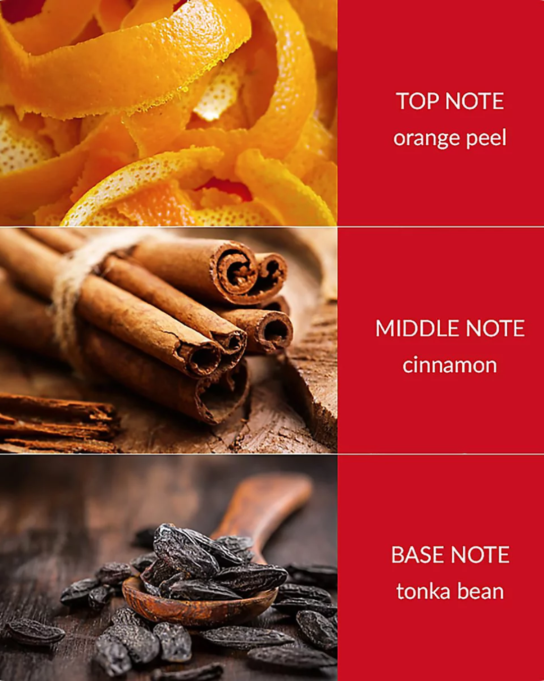 Christmas Magic brings notes of zesty orange and comforting spices, evoking warmth and festive enchantment in every flicker. Luxuriously packaged in a festive gift box, adorned with a stunning illustrated scene. Comes complete with ribbon hanger and gift tag! A wonderful gift to give or receive Top: Orange Peel Mid: Cinnamon Base: Tonka Bean