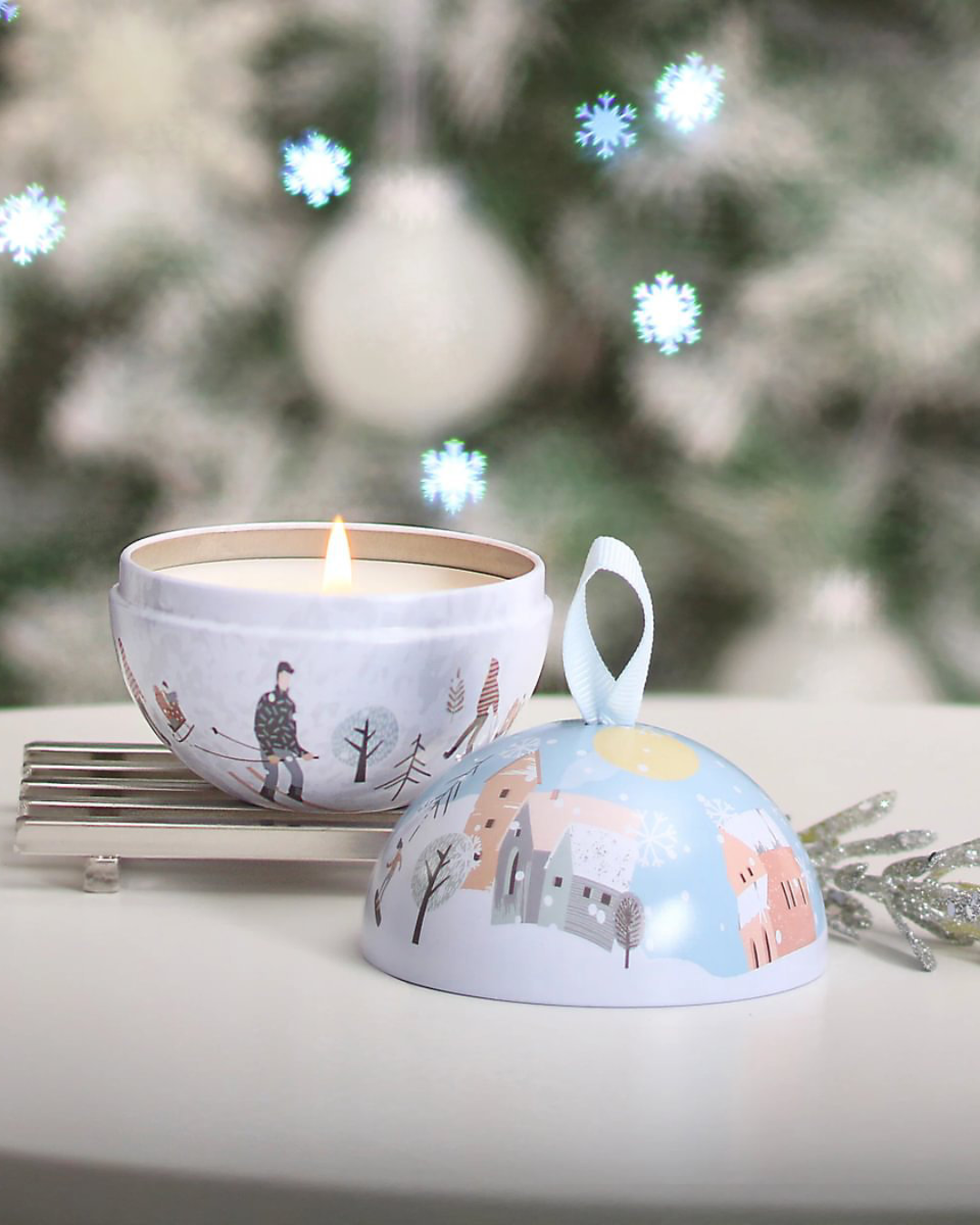 Heart and Home Tin Candles are a perfect secret santa gift or stocking filler for any candle lover. With a fragrance-rich, renewable and sustainable soy wax blend to fill the room with a wonderful seasonal scent that uplifts and invigorates the senses. The Snowflake Sparkle tin candle is in the shape of a festive bauble - complete with a hanger - and simply dazzles with bergamot and yuzu, blending into a heart of snowdrops and freesia. With undertones of vanilla and cashmere musk to create a warm, enchanting finish. The bauble tins are adorned with stunning illustrated scenes for a seasonal touch, and the pretty lid means that the Heart and Home tin candle is also the perfect travelling companion, and with up to 30 hours of burn time, you can sit back, relax, and indulge in your favourite fragrance wherever you may be.