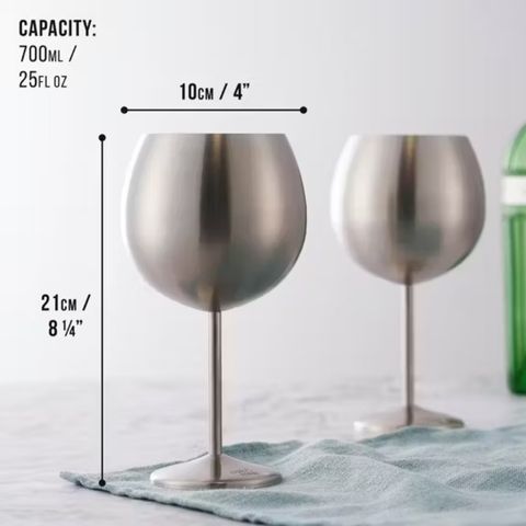 Silver Matte Stainless Steel, Balloon Cocktail Gin Glasses
