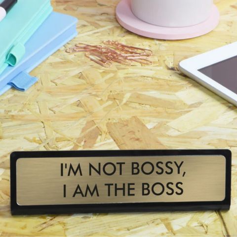 Liven up your workspace with these amazing deskplates. Make a statement to colleagues or simply give yourself a dose of daily motivation. They're also the perfect gift for hard-to-buy-for co-workers! "I'm Not Bossy I Am The Boss" engraved on a gold plaque with a black acrylic frame. Available in two sizes: medium and large. Medium measurements: L15 cm x H4 cm Large measurements: L21 cm x H6 cm
