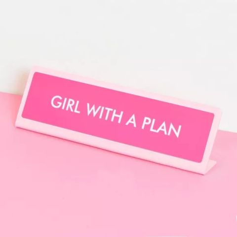 Liven up your workspace with these amazing deskplates. Make a statement to colleagues or simply give yourself a dose of daily motivation. They're also the perfect gift for hard-to-buy-for co-workers! "Girl with a Plan" engraved on a bright pink plate with a baby pink acrylic frame. Available in two sizes: medium and large. Medium measurements: L15 cm x H4 cm Large measurements: L21 cm x H6 cm