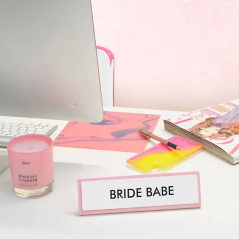 Bride Squad gifts have never looked so cute! Our new Bride Squad collection is the perfect token of appreciation and pick me up for your best girls. Soft pastel pinks and whites combined with delicious scents and pretty details, beautifully coordinated with all the finishing touches to say thank you to your Bride Squad. Each piece in the collection can be personalized, either with a monogram or a handwritten note and we've even included some gifts for me, love me, for Bridey too! Liven up your workspace with these amazing deskplates. Make a statement to colleagues or simply give yourself a dose of daily motivation. They're also the perfect gift for hard-to-buy-for co-workers! "Bride Babe" engraved on a white plate with a baby pink acrylic border. Available in two sizes: medium and large. Medium measurements: L15 cm x H4 cm Large measurements: L21 cm x H6 cm