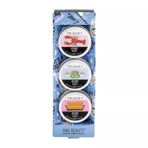 Give lips a dose of nourishment with this trio of moisturising lip balms in strawberry, coconut and cherry fragrances. One for your handbag, desk and dressing table and presented in a printed box, each handy lip balm tin is adorned with a different iconic graphic from the hit TV series, making them a lovely little gift.