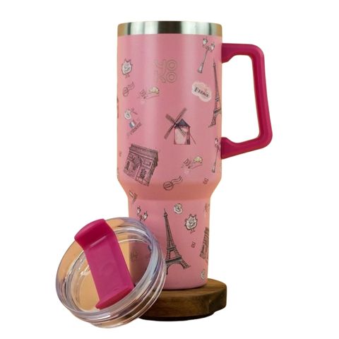 Discover our new large capacity mug, perfect for coffee, tea and cold drink lovers who like to enjoy their favorite drink in large quantities. This stylish mug features a unique pattern inspired by the iconic monuments and symbols of Paris. There you will find the majestic Eiffel Tower, the charming street lamps typical of the city, as well as French delicacies like the croissant and the macaroon. The Arc de Triomphe also features, adding a touch of elegance and grandeur. Made with high quality materials, this mug is not only a tribute to the beauty and culture of Paris, but also an ideal companion for your moments of relaxation, whether with a hot or cold drink. Treat yourself to a piece of Paris with every sip! Ps: comes with a large straw 1.2L Hand wash only. BPA free See Less Dimensions Length 9.5 cm Width 9.5 cm Height 27 cm Weight 520 g Volume 1.2 l