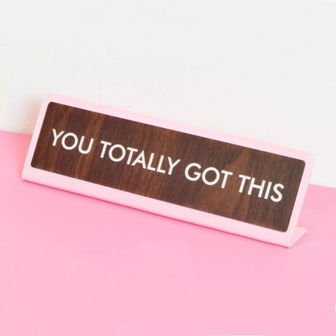 Make a statement to colleagues or just give yourself a dose of everyday motivation. They make the perfect gift for hard-to-buy for workmates too! 'You totally got this' engraved onto a wood plate with baby pink acrylic surround.