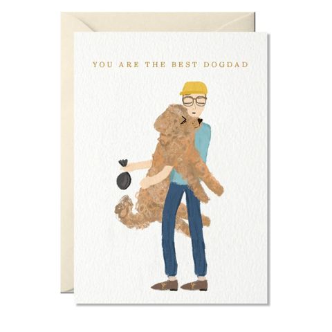 This greeting card is the perfect way to show your gratitude to the Dogdad in your life. Featuring a stylish young man with nerdy glasses and a yellow cap carrying his big pup, the message is loud and clear: you are the Best! Let him know he's one of a kind with this pup-approved gift.