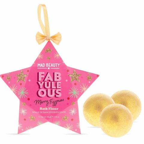 Give someone fabulous the gift of a relaxing soak in the tub! Get ready to shine bright over the holidays with three shimmering gold bath fizzers fragranced with winter berries and packaged in a giftable star shaped bauble style box complete with a ribbon to hang on the Christmas tree!