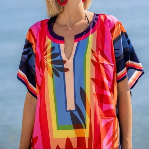 The DreamBeach Kale Beach Tunic from the Alberto Cabale brand is a must-have for all women looking to spend sunny days on the beach or at the pool. With its modern palm leaf print on a black background with shades of pink and orange, this tunic is both elegant and trendy. It is made from 100% premium viscose, which guarantees unrivaled comfort and lightness. Main Features : Modern Palm Leaf Print: The pattern is designed to appeal to all women looking to be fashionable while remaining elegant. The black background with hints of pink and orange makes this tunic easy to match with other beach outfits. -One size, ankle length: The DreamBeach Kale tunic is suitable for all women thanks to its one size. In addition, its ankle length offers additional protection against the sun's rays while remaining elegant. -Versatile: This tunic can be worn in many different ways, whether as a lightweight beach dress or as a tunic with denim shorts. It is therefore ideal for all beach occasions.