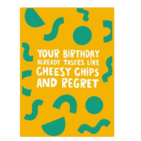 It’s time to prepare to party hard – get the paracetamol ready. Send this funny patterned illustrated typographic birthday card to your bestie in anticipation of a wonderful night out and a prolific hangover for the next day. When you pre-empt the cheesy chips, kebab or any other takeaway of your choosing before birthday celebrations, you already know its going to be a heavy one. At least you’re ready for