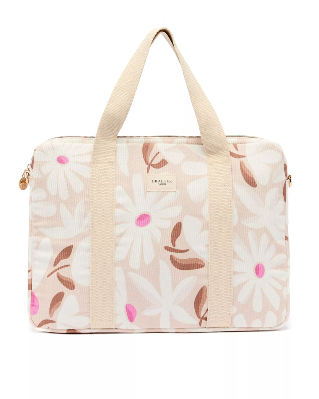 Office Chic Floral Computer Bag in Taupe color, perfect for a chic look at the office. With its elegant and practical design, it protects the computer while adding a touch of style. * Computer bag * Material: 100% cotton Cotton lining * Dimensions: Length: 38 cm Width: 3.5 cm Height: 28 cm * Weight: 0.295 kg * 2 handles * 2 integrated rings * Interior divider Care: Prefer dry cleaning.