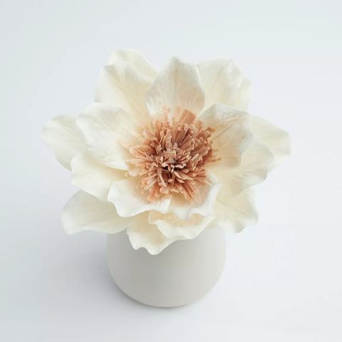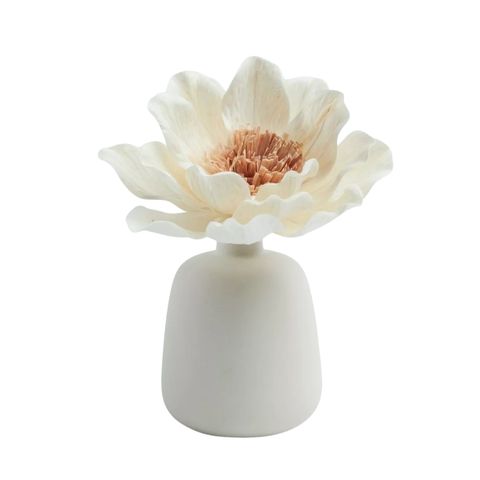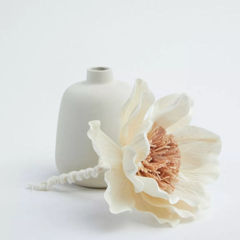 Add a touch of elegance to your decor with this Beige ceramic vase and its wooden paper flower. Pour a room fragrance into the vase, immerse the flower with its cotton stem, and let the scent diffuse throughout the room. This minimalist style decoration measures 20 cm high and approximately 17 cm wide. Suitable for modern or classic style interiors.