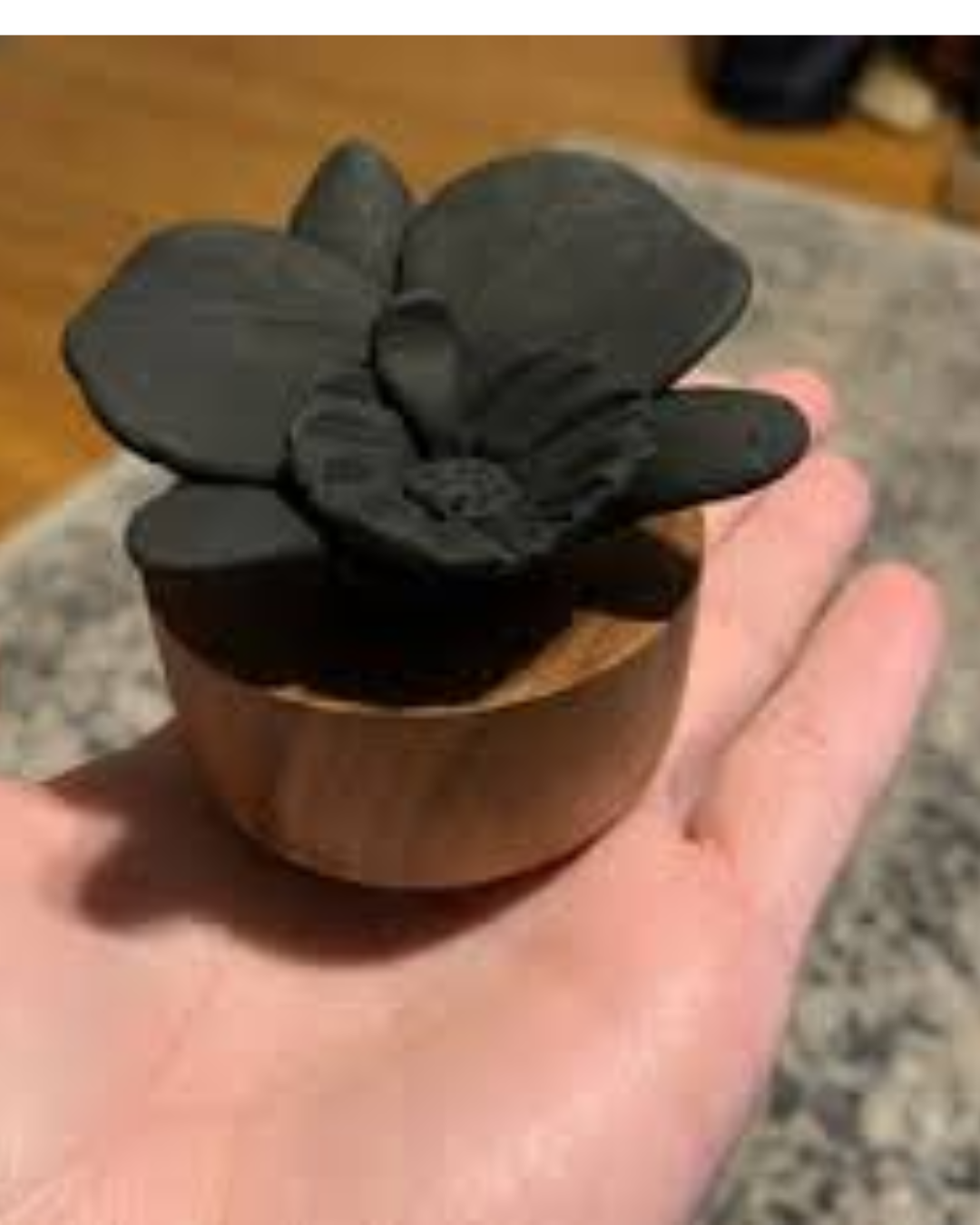 Diffuser for essential oils and perfume concentrates. Porcelain flower, Acacia wood base. Handcrafted product made in the workshop, with natural materials. Discover our scents specially designed for our diffusersThis product is sold unscented. You can use one of our perfume concentrates offered on our store. 100% natural diffusion: Our diffusers are ecological, reusable and durable products. Infinitely scentable: Porcelain can be perfumed again and again. Because sustainable objects are better for the ecology and the planet! The flower was made entirely by hand. ANOQ guarantees its authenticity and the exclusive quality of a genuine product resulting from craftsmanship.