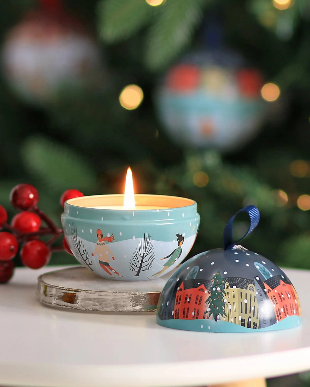 The Baubles and Berries tin candle is in the shape of a festive bauble - complete with a hanger! Delightfully seasonal and bursting with the lush richness of ripe berries, sweet cassis, and delicate floral notes - a luxurious feast for the senses! The bauble tins are adorned with stunning illustrated scenes for a seasonal touch, and the pretty lid means that the Heart and Home tin candle is also the perfect travelling companion, and with up to 30 hours of burn time, you can sit back, relax, and indulge in your favourite fragrance wherever you may be