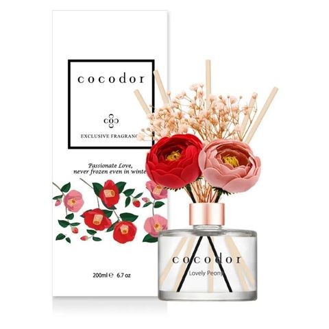 Cocodor Camelia Diffuser 200ml - Lovely Peony Fragrance with Preserved Baby’s Breath & Camelia Flowers .Elevate your space with the Cocodor Camelia Diffuser 200ml in Lovely Peony, a refined and luxurious floral reed diffuser designed to bring timeless elegance to your home.
