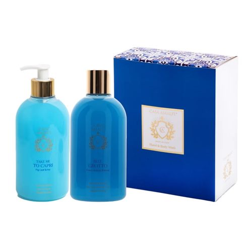 The Blue Grotto body wash envelops your skin with notes of Amalfi lemon, orange blossoms and mandarin, enriched by lavender and aquatic accords, resting on a base of sea salt, ambergris and precious woods. The Take Me to Capri hand soap is a tribute to the enchanted island, with sweet notes of fig leaves and ivy that blend with peach, coconut, iris and violet, on a base of cedarwood, patchouli and sandalwood.