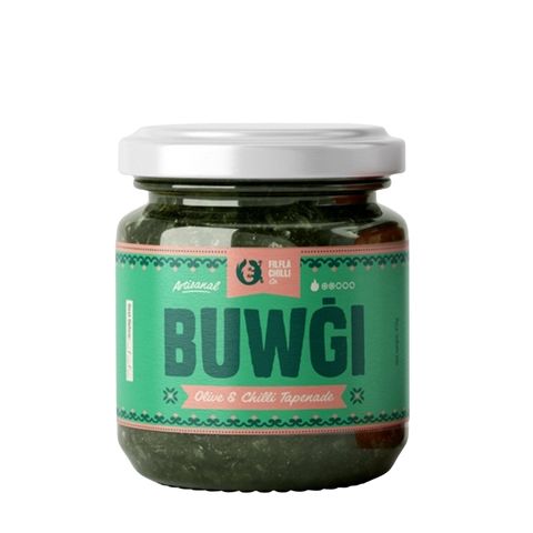 Pronounced ‘Boowjee’, BUWĠI takes its inspiration from the Maltese word ‘żebbuġ,’ meaning olives 🫒. With a spice level of 2 out of 5 this olive and green chilli tapenade strikes the perfect balance for those who enjoy a touch of heat without overwhelming their taste buds 🤤. Packed with a delightful blend of Maltese and Kalamatta olives, along with a medley of green chillies, sultanas and marjoram, this product is also vegan-friendly 🌱, making it a delightful choice for everyone!