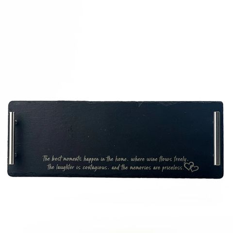 Hand cut in Scotland from high quality slate, this tray is extremely durable, versatile, and displays a natural contemporary elegance. Slate Serving Tray - Small - The Best Moments from The Just Slate Company. Design: Sayings Dimensions: 16.5" x 5.9" Made from: Slate & Stainless Steel