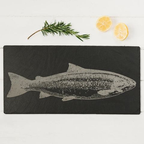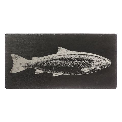 Practical, durable and sleek our Table runner will add a touch of class to your dining table whilst also protecting your table from scratching from centre pieces or condiments. Our table runner is also great for serving hot dishes straight from hob or oven to table for those more relaxed "help yourself" style meal times. Our Table runner has been engraved with a fabulous hand illustrated image of a handsome and bold salmon to add a unique touch to your table setting.
