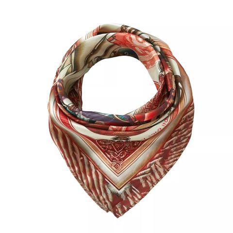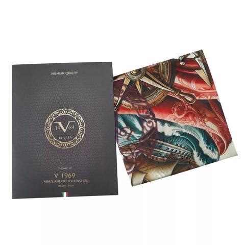 The Red Boat Silk Square draws its inspiration from maritime themes, featuring a splendid ship surrounded by anchors, ropes and compasses, evoking a spirit of nautical adventure. Made with the highest quality silk, this scarf exemplifies the elegance and richness of detail that the V1969 Italia brand embodies. Measuring 70x70cm, this design captures the essence of sailing with a vibrant colour palette, making each piece unique and captivating. Summary: Size: 70x70 cm Material: 100% silk Pattern: Ship and nautical elements Predominant color: Red and beige Brand: V1969 Italia Gift bag: Comes in a luxurious printed bag, ready to give as a gift.